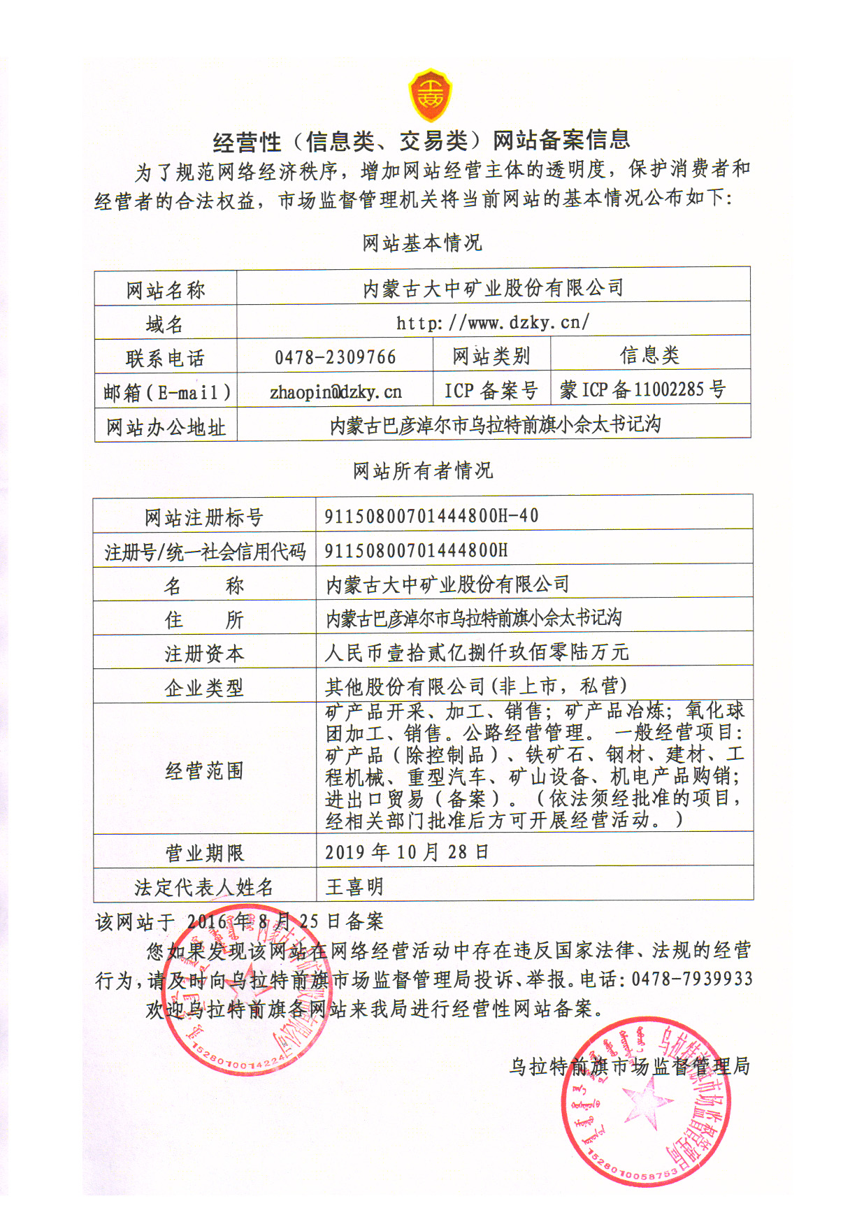 地  址:内蒙古巴彦淖尔市乌拉特前旗小佘太书记沟
